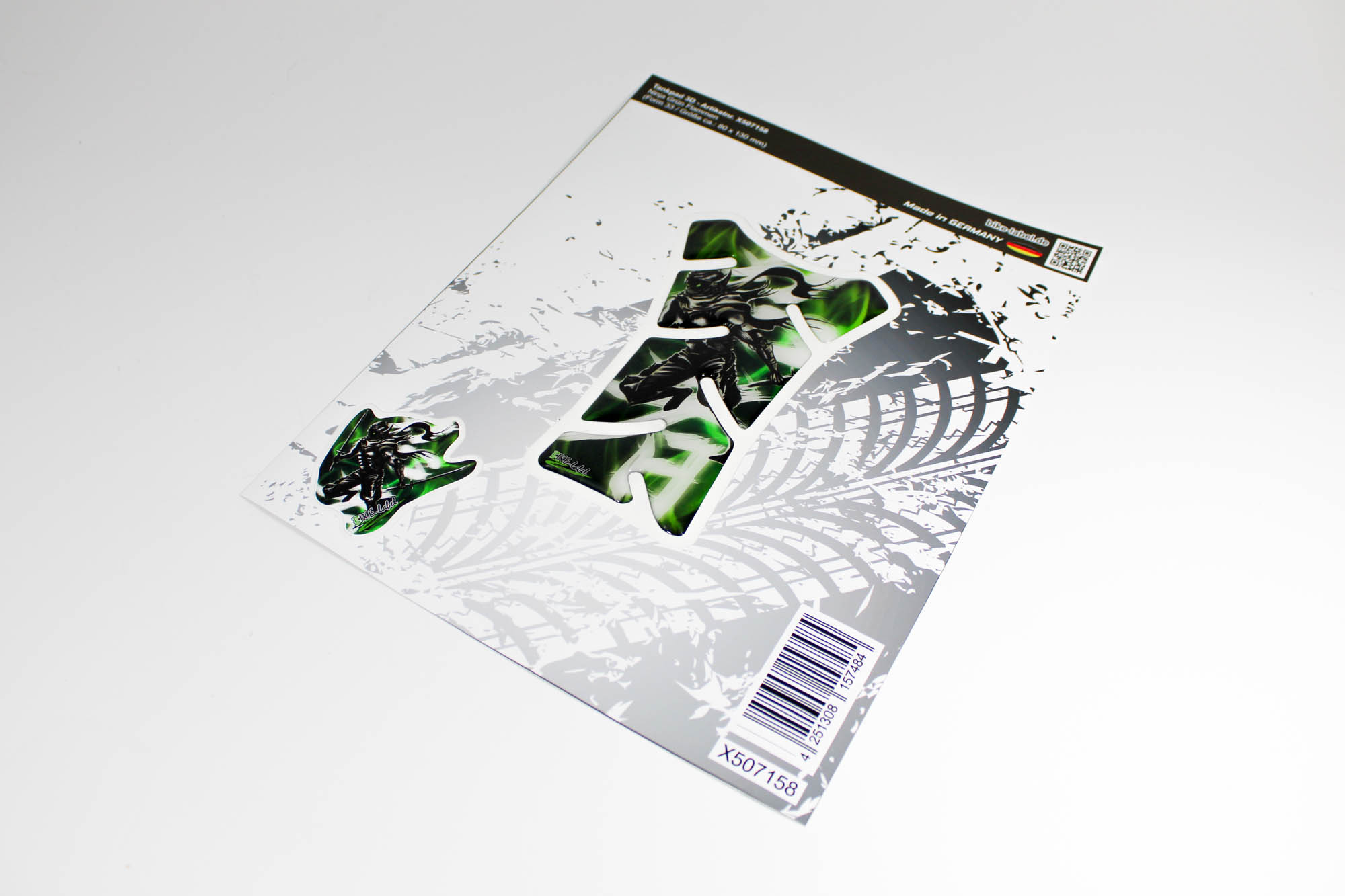 Eigenschaften "Tankpad 3D Motorrad Aufkleber Ninja Flammen Grün Lackschutz Tankschutz"