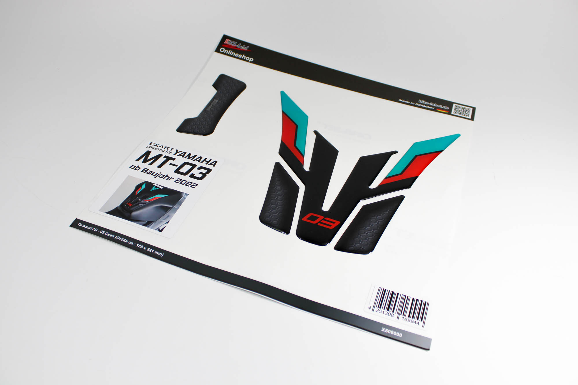 Eigenschaften "Tankpad 3D Schutz Aufkleber kompatibel mit Yamaha MT-03 Cyan Storm - ab BJ 2022"