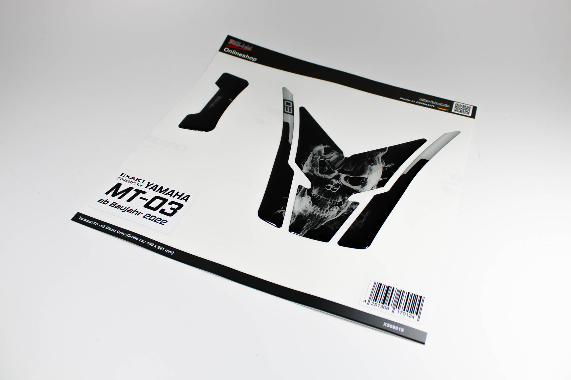 Eigenschaften "Tankpad Gel 3D Motorrad kompatibel mit Yamaha MT-03 Totenkopf Grau - ab BJ 2022"