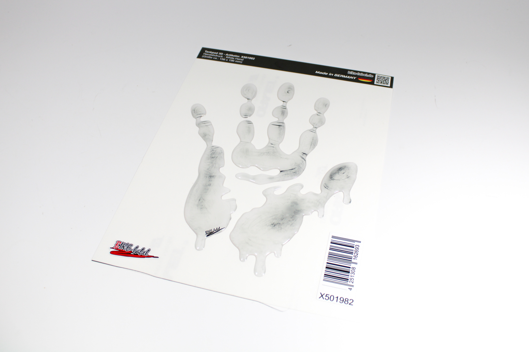 Eigenschaften "Tankpad Hand Weiß Grau Lackschutz 3D Deco Aufkleber Motorrad Tankschutz"