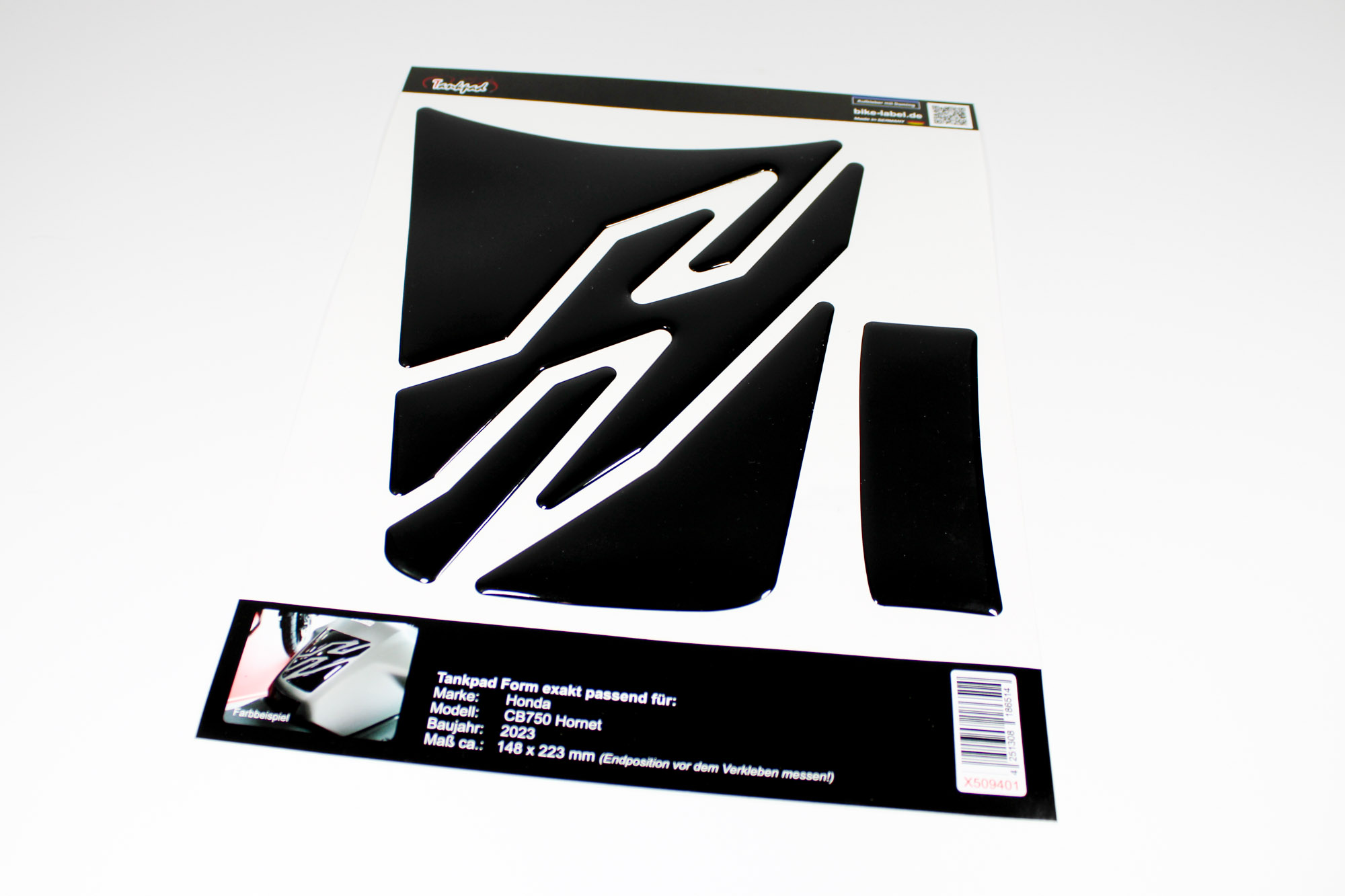 Eigenschaften "Tankpad Motorrad 3D Gel Aufkleber uni schwarz kompatibel für Honda CB750 Hornet"