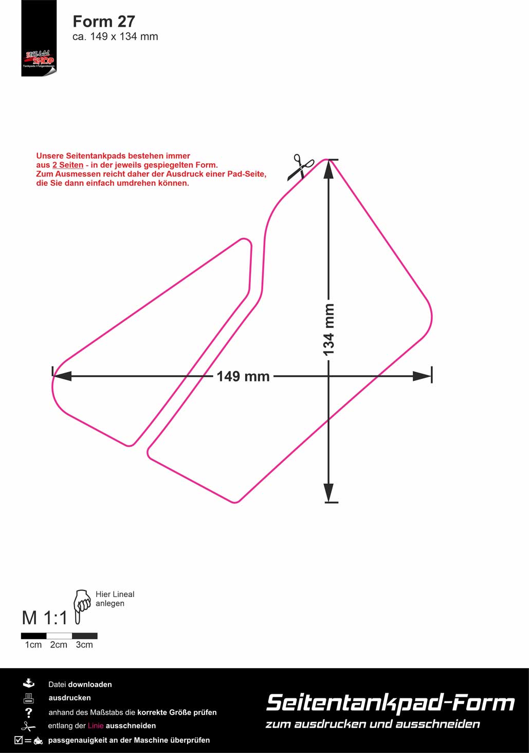 | Seitentankpad Form : | Form 27 (149 x 134 mm) |