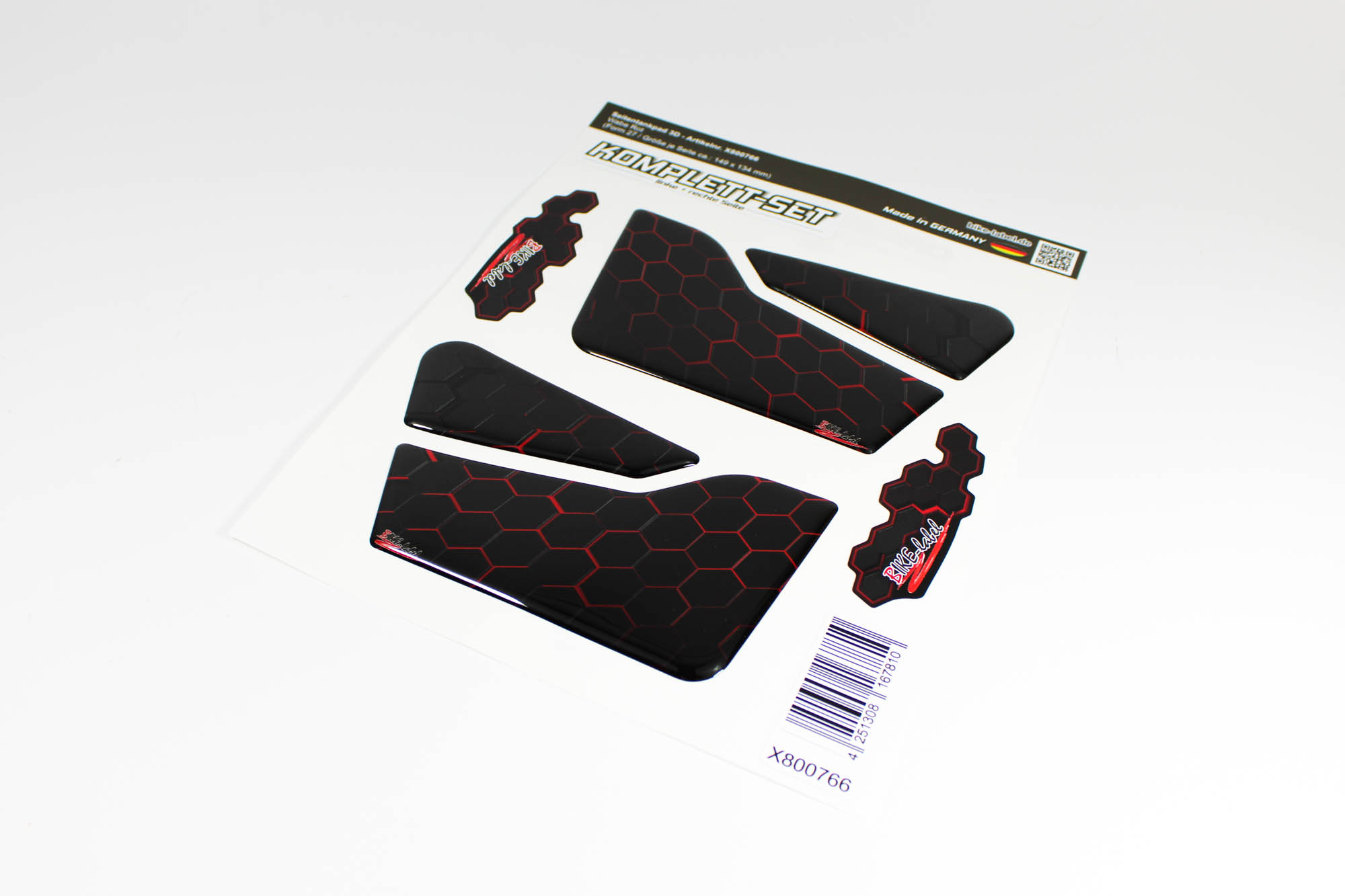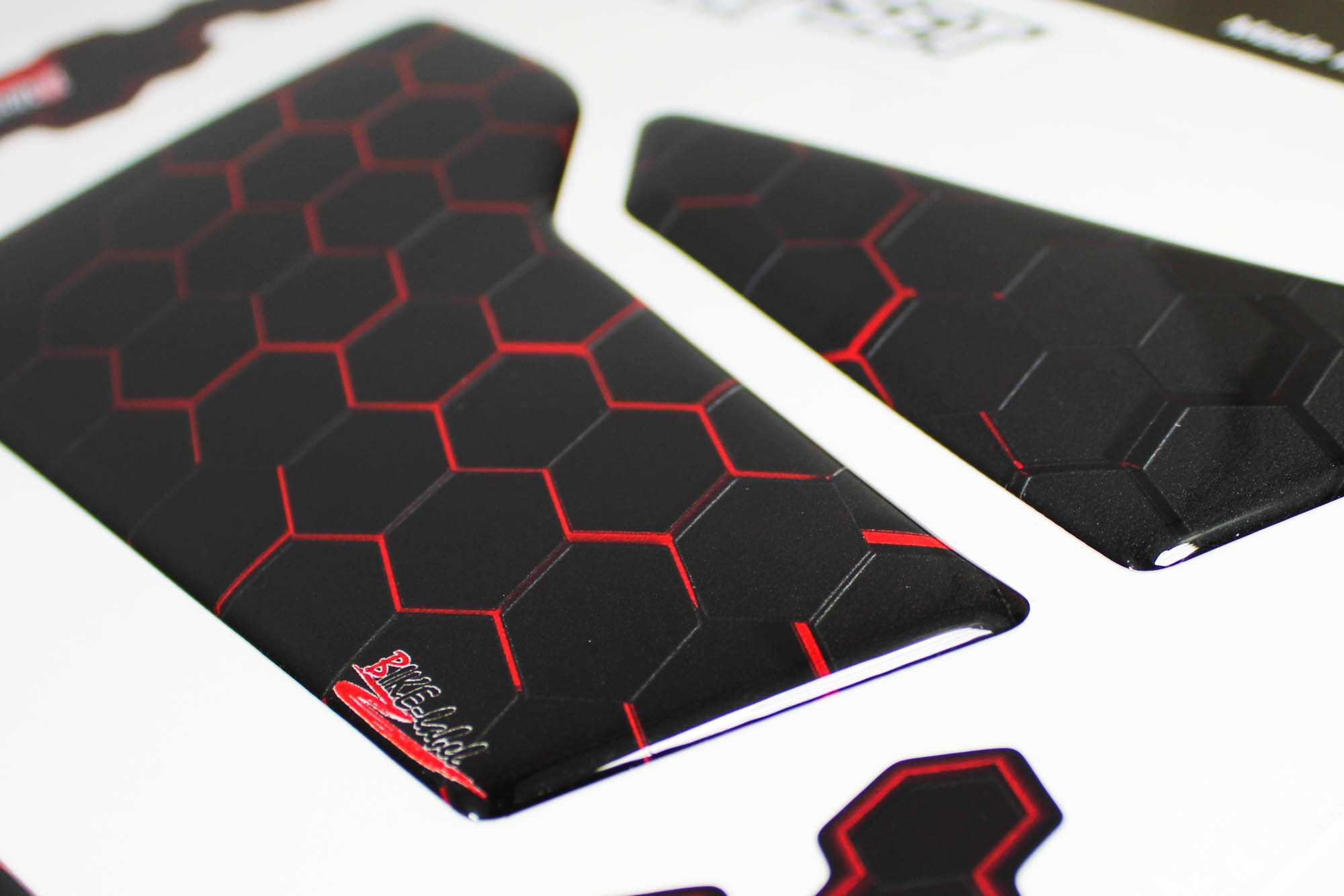 Eigenschaften "Wabe Rot Schwarz Lackschutz Motorrad Tankpad seitlich Kniepad 3D Gel Aufkleber"