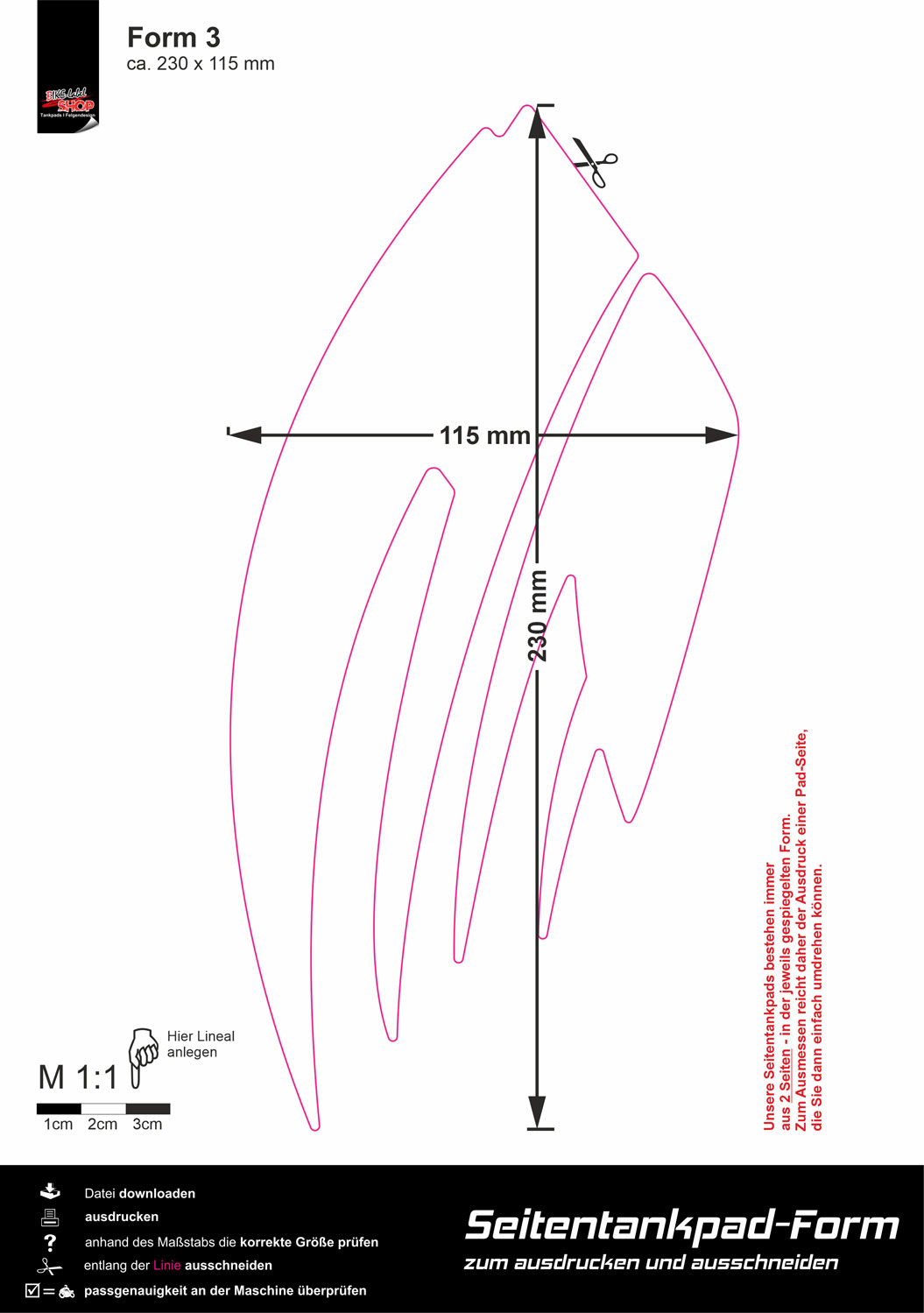 | Seitentankpad Form : | Form 3 (230 x 115 mm) |