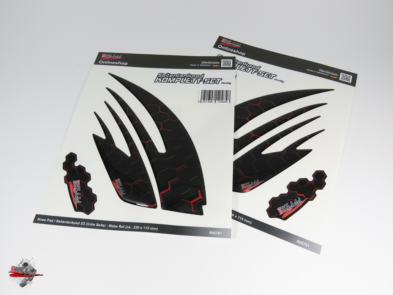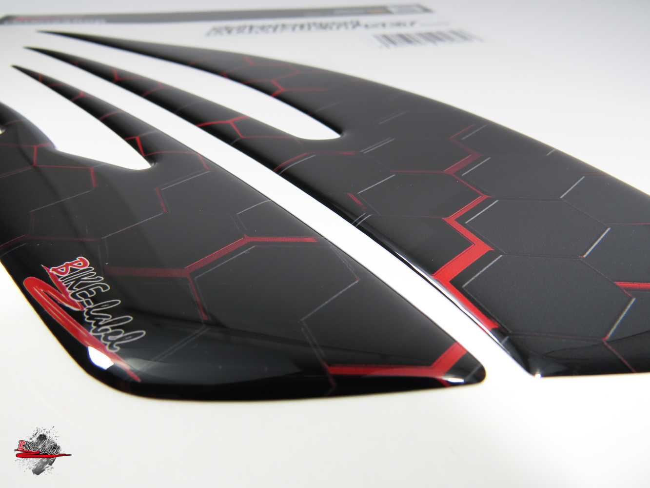 Eigenschaften "Wabe Rot Schwarz Lackschutz Motorrad Tankpad seitlich Kniepad 3D Gel Aufkleber"