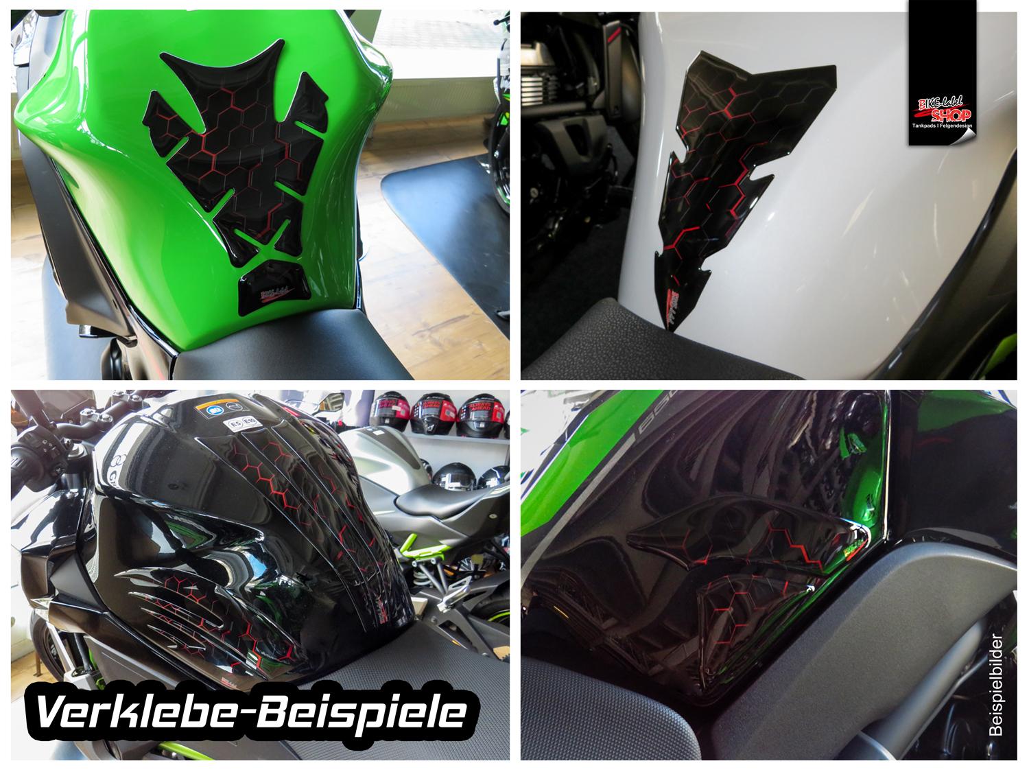 Wabe Rot Schwarz Lackschutz Motorrad Tankpad seitlich Kniepad 3D Gel Aufkleber