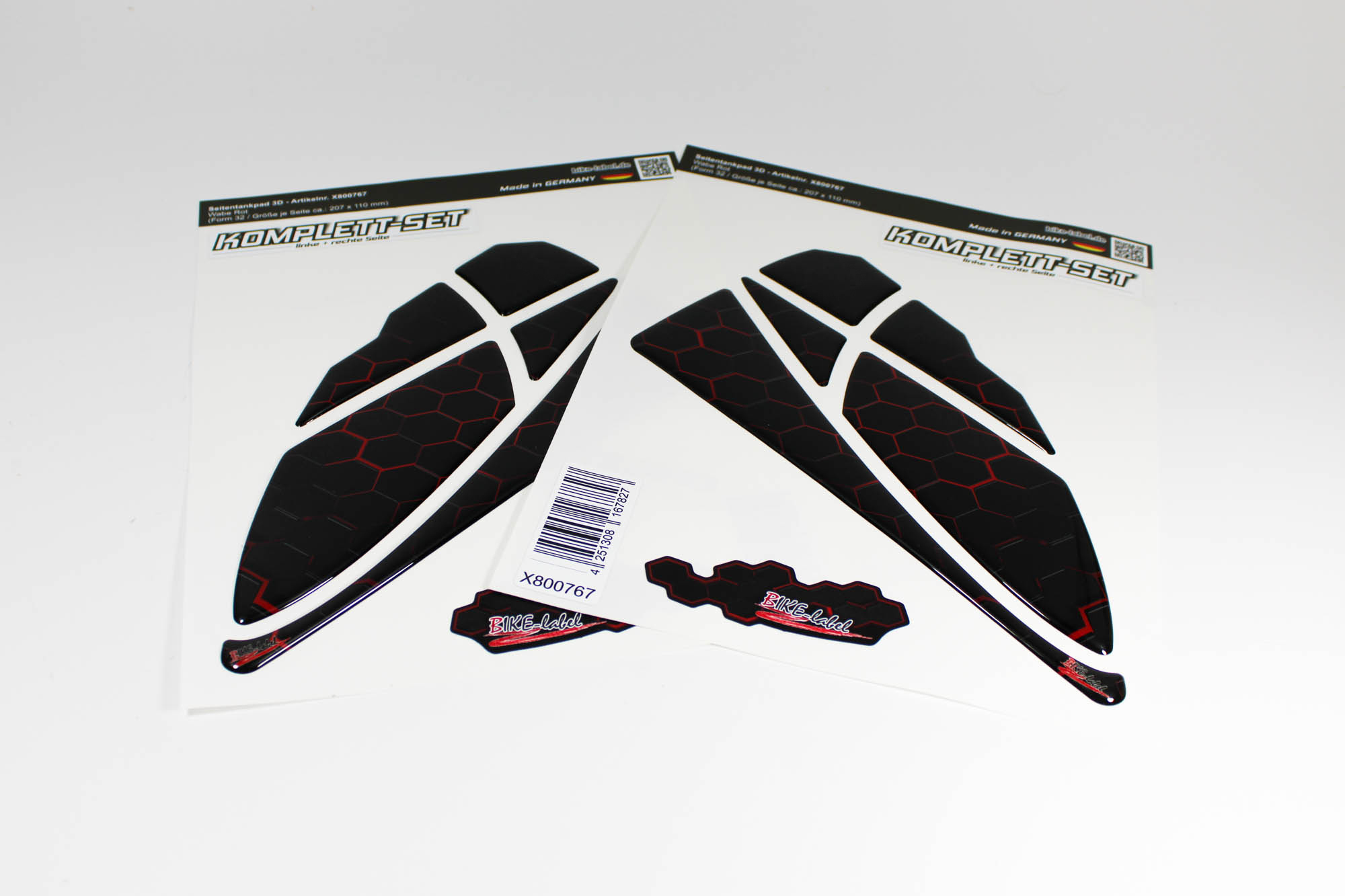Wabe Rot Schwarz Lackschutz Motorrad Tankpad seitlich Kniepad 3D Gel Aufkleber