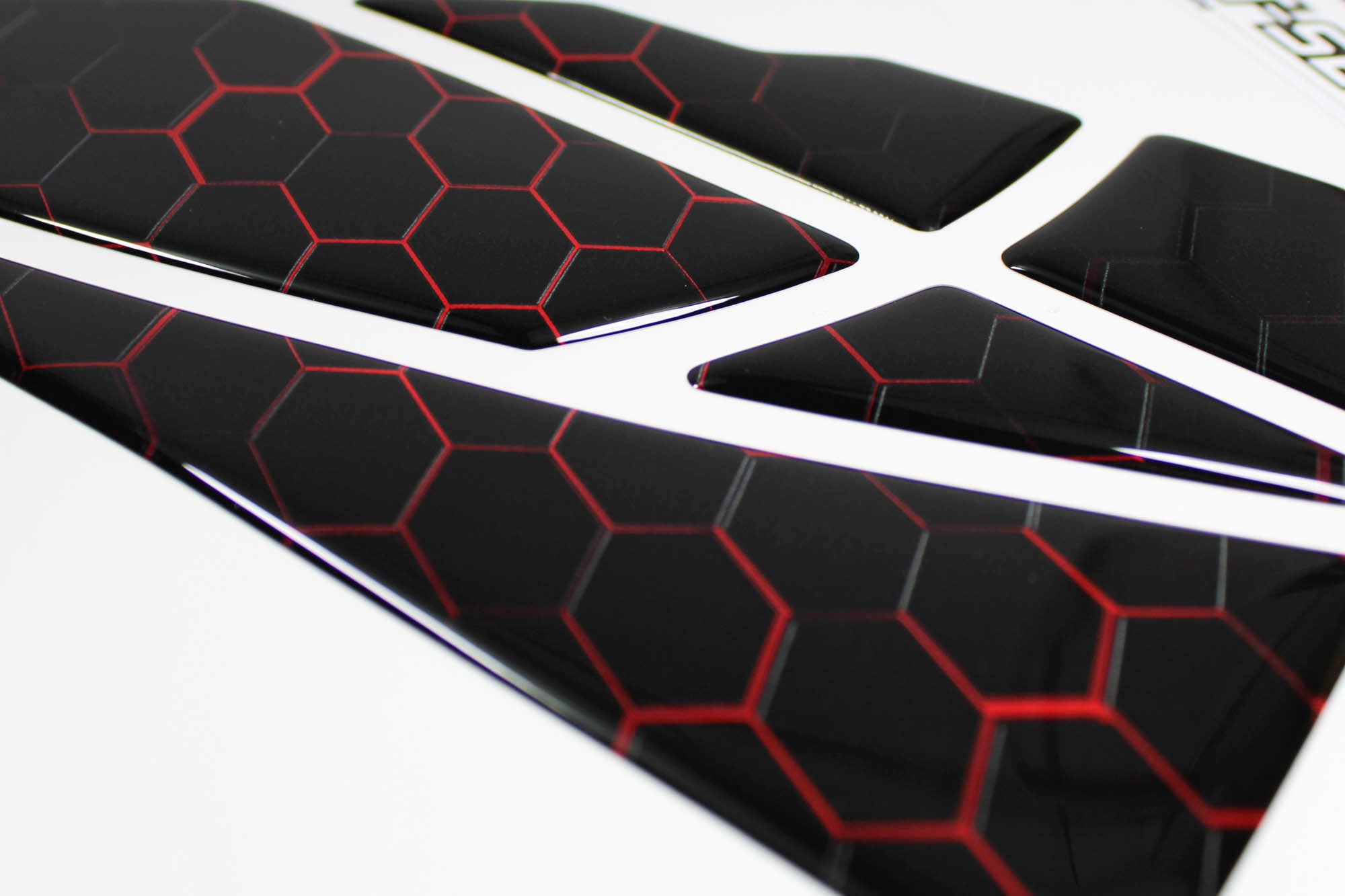 Eigenschaften "Wabe Rot Schwarz Lackschutz Motorrad Tankpad seitlich Kniepad 3D Gel Aufkleber"