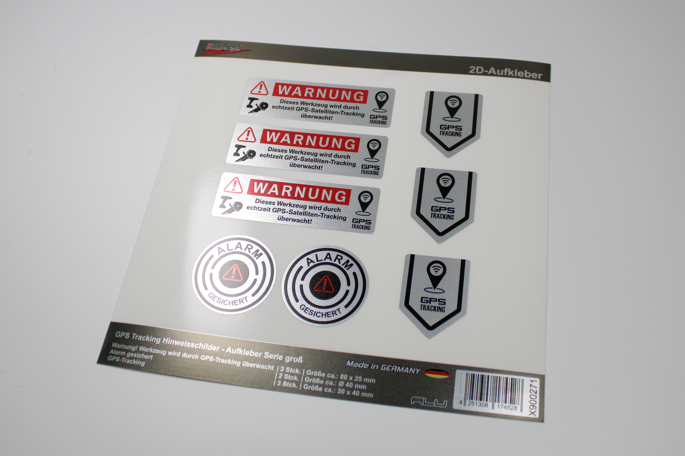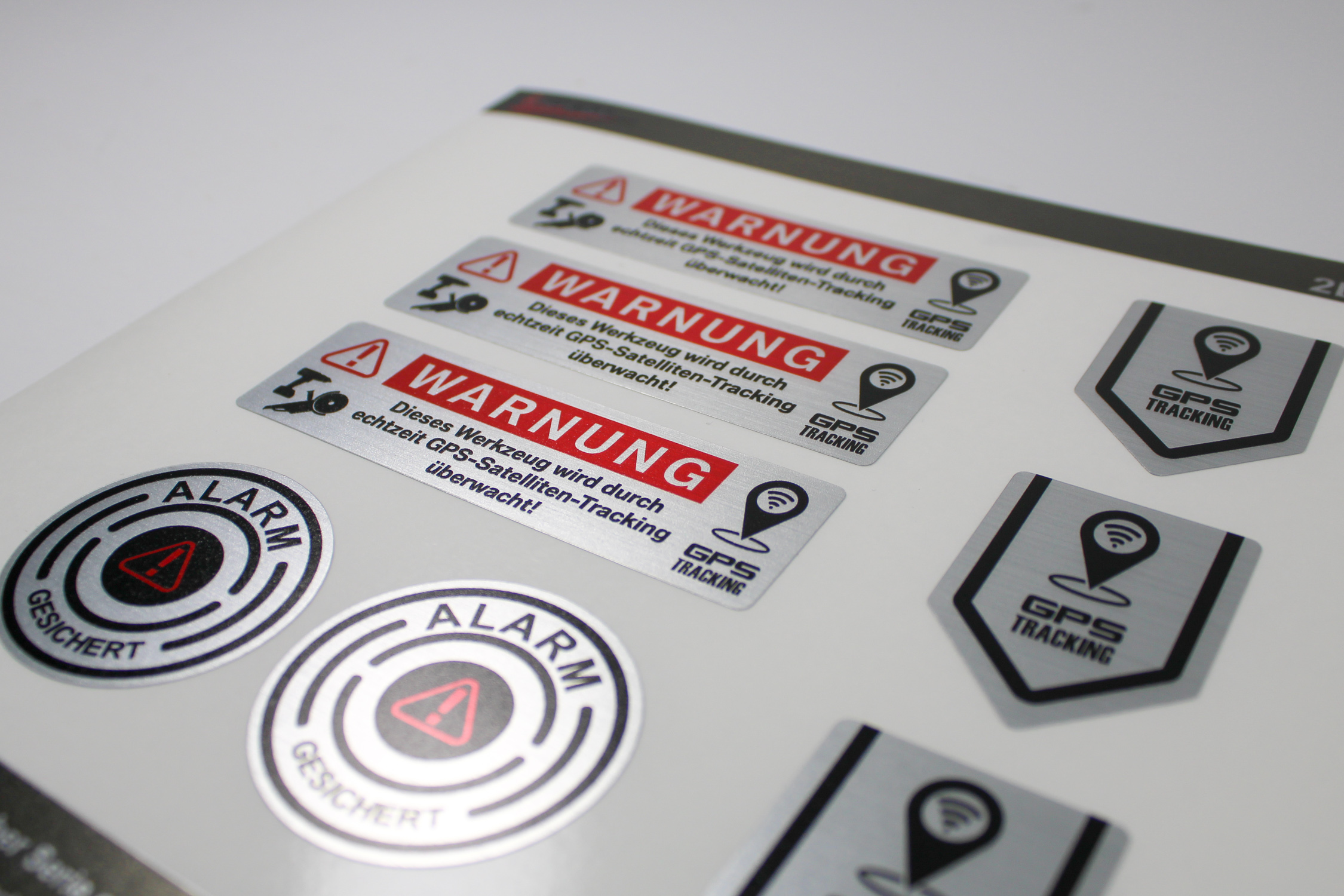 Werkzeug Anti Diebstahl Warnung GPS Tracking Sticker alu gebürstet 8 Set Sticker