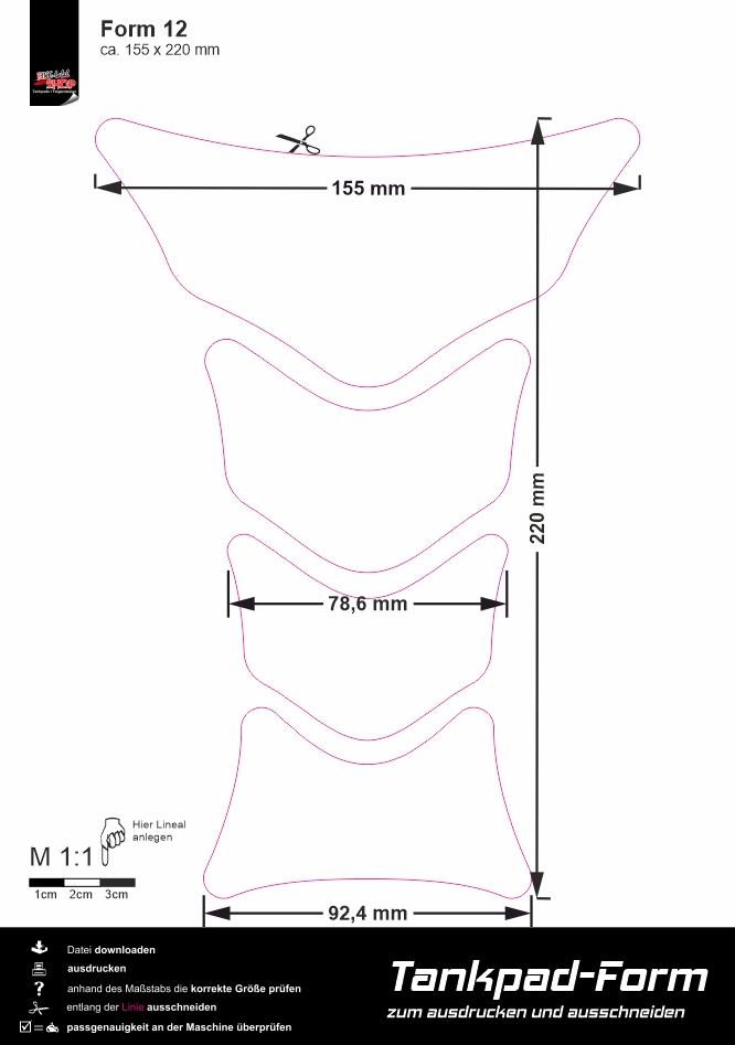 Eigenschaften "Wunsch-Tankpad selber gestalten für dein Motorrad"
