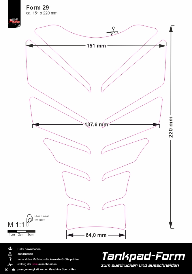 Eigenschaften "Wunsch-Tankpad selber gestalten für dein Motorrad"