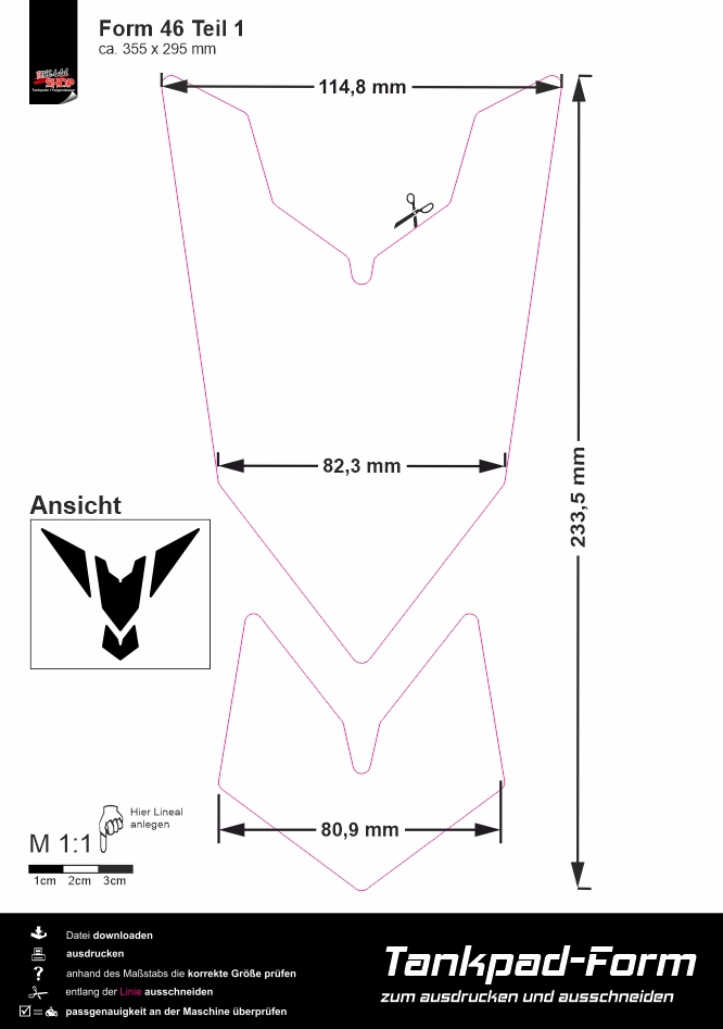 Eigenschaften "Wunsch-Tankpad selber gestalten für dein Motorrad"