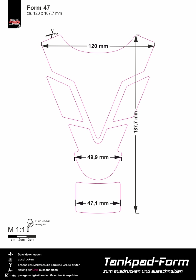 Eigenschaften "Wunsch-Tankpad selber gestalten für dein Motorrad"