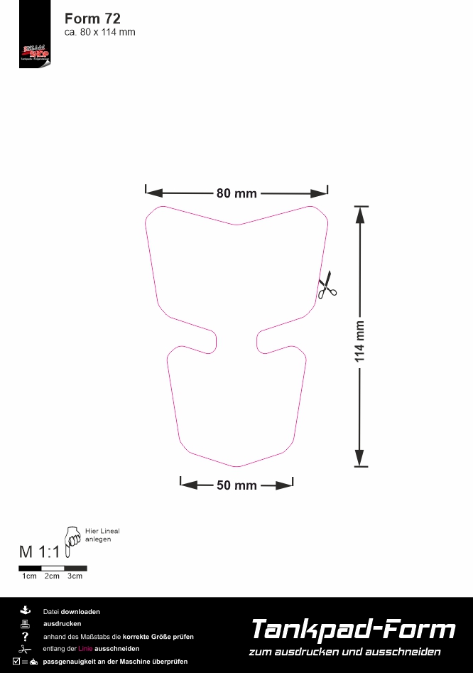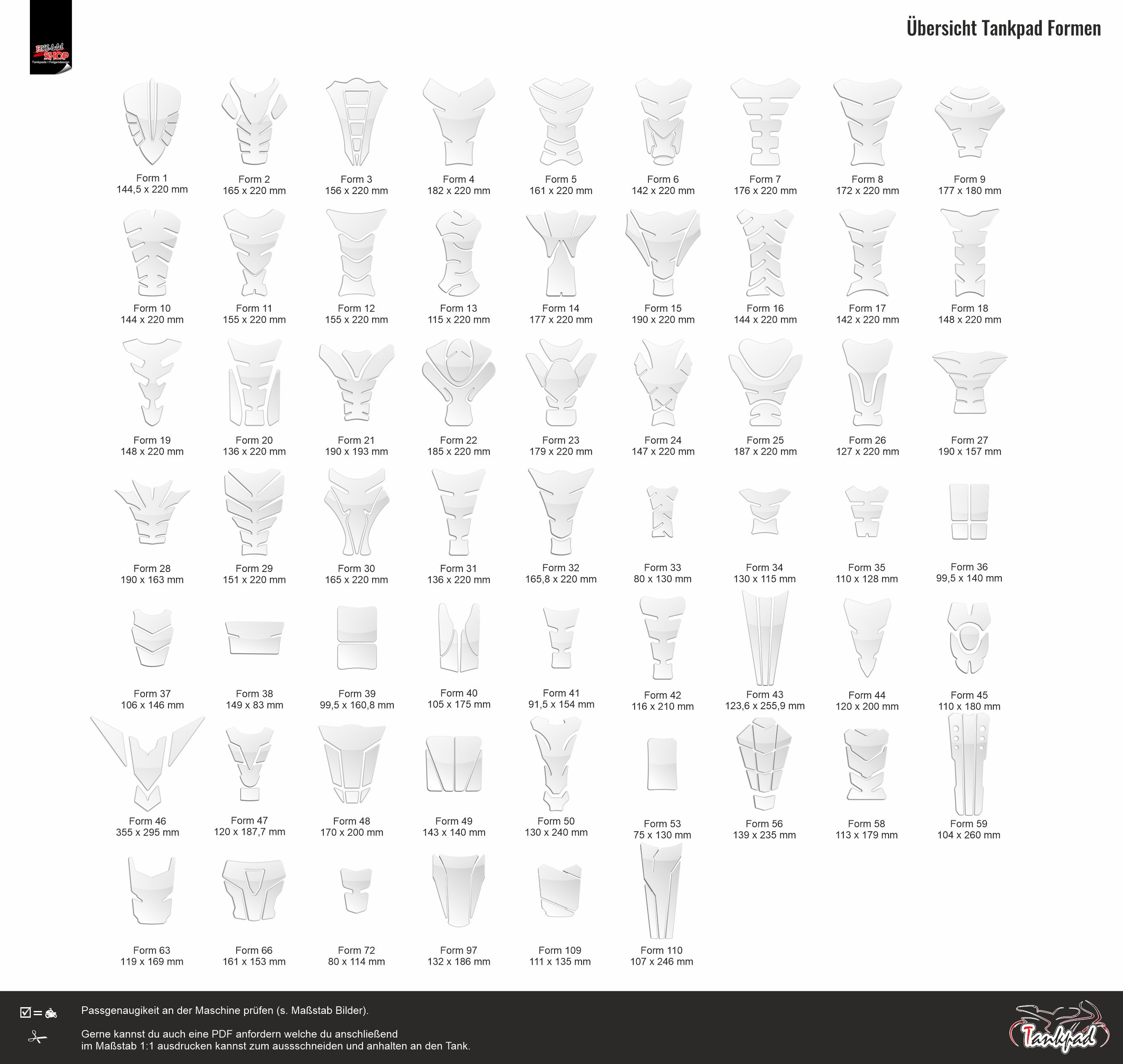 Eigenschaften "Wunsch-Tankpad selber gestalten für dein Motorrad"